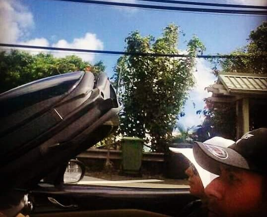 So we thought it was pretty funny when he texted us saying he couldn’t find the car and that he’d pick us up. He said he had another car he’d let us have for no extra charge since he made a mistake. Ray was a super chill, middle-aged “kiwi” from New Zealand who was enjoying living the bachelor’s life in Hawaii. We pull into a neighborhood just outside an airport parking lot and he parks next to the sidewalk among some scattered cars on the street. We hop out and follow him to a beautiful, new, gun metal 2-seater convertible and he tosses us the keys. How lucky was that!